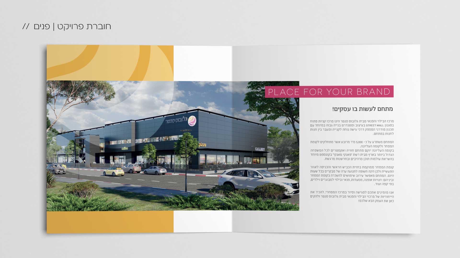 במסגרת העבודה עם גלובוס סנטר, יצרנו עבורם קונספט שיווקי וזהות מותגית חדשה, מתוך מטרה למשוך שוכרים פוטנציאליים למתחם.